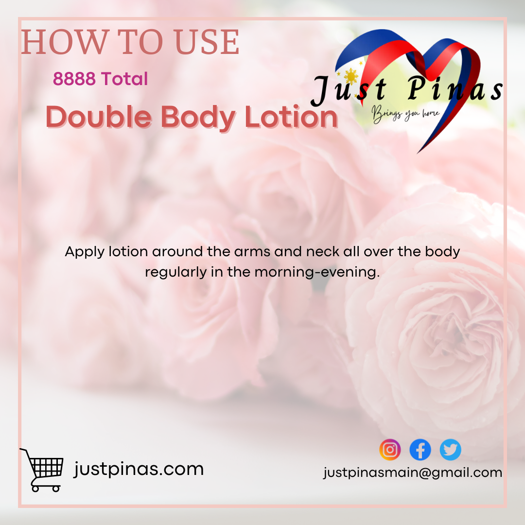 Feel the power of 8888 Total Double Lotion and experience a luxurious softness like no other. Our unique combination of botanical extracts from Thailand provides an intense moisture boost for your skin, leaving you feeling silky smooth all day. Dare to take a double dose of hydration and feel the difference it makes!