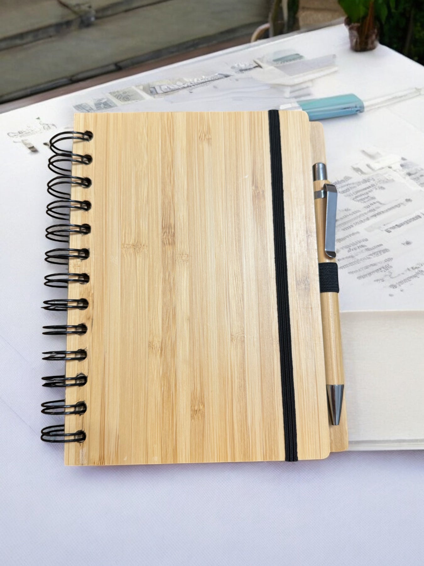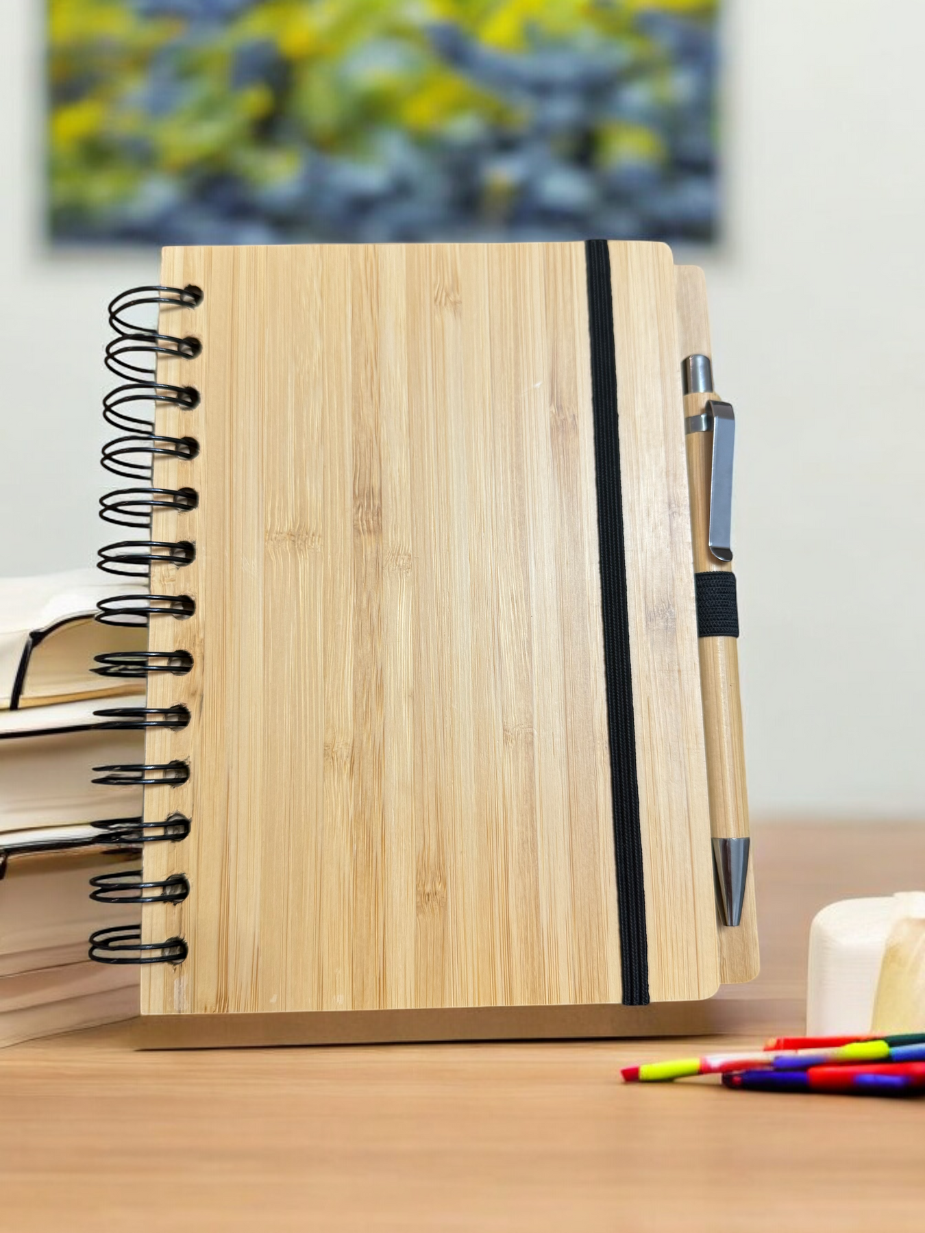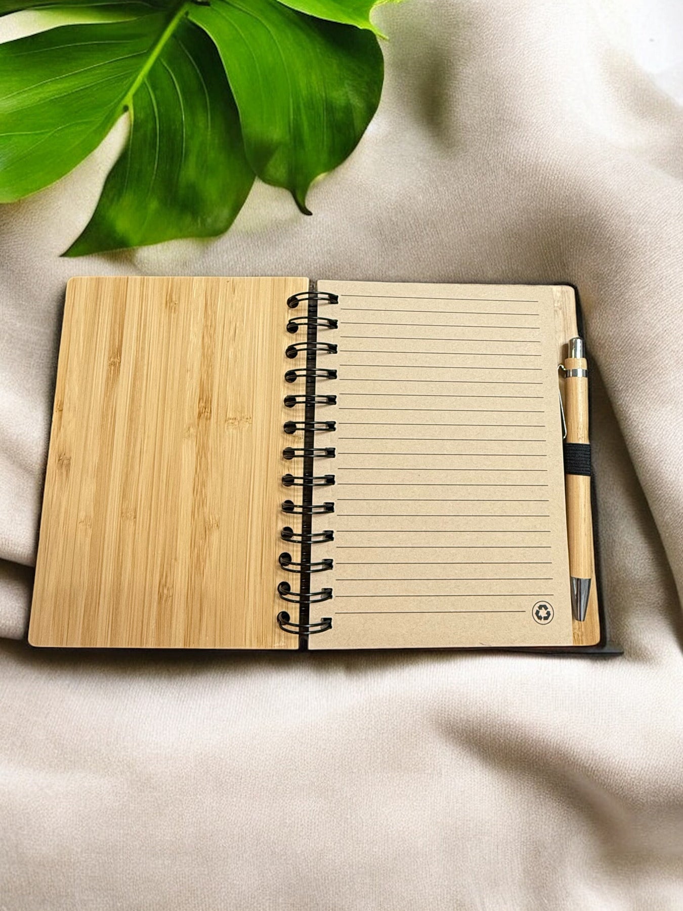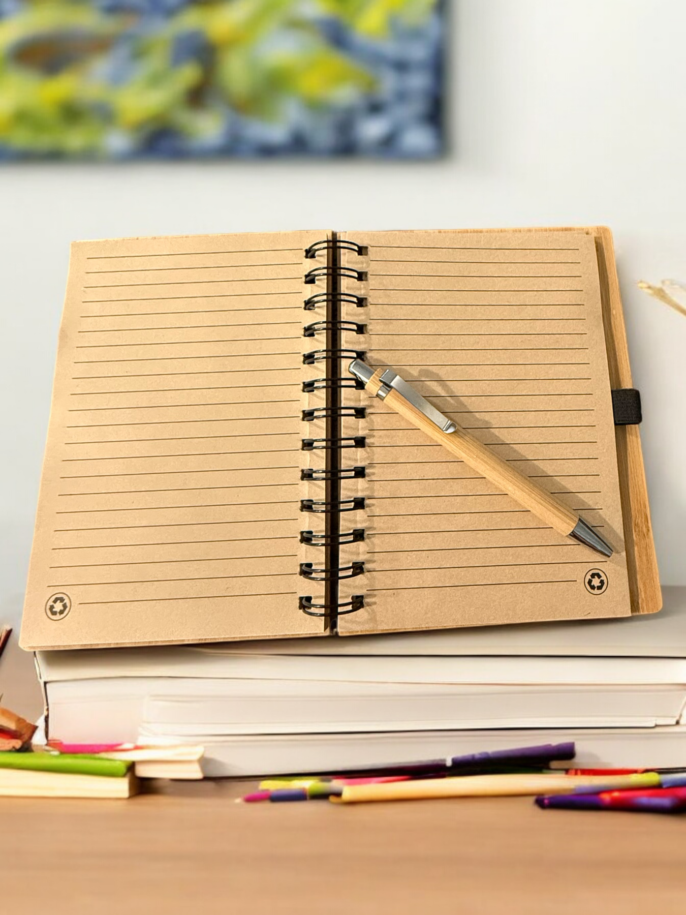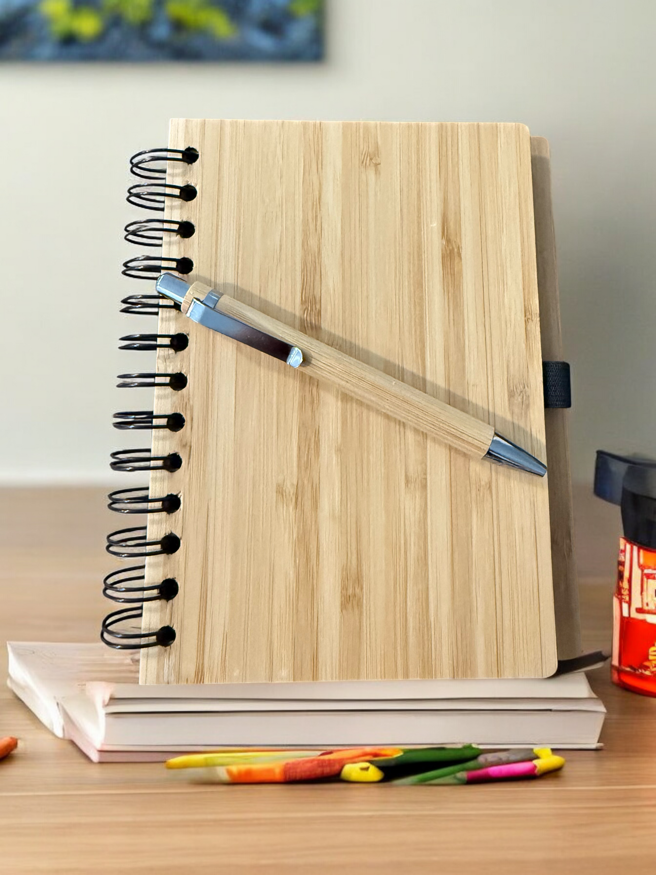 This Bamboo Spiral Notebook with Ballpen is the perfect eco-friendly writing companion. The notebook and ballpen are made from sustainable bamboo material, giving you a stylish and sustainable way to take notes and write. With a smooth writing experience and a durable design, this notebook and ballpen set is the ideal choice for any environmentally-conscious individual.