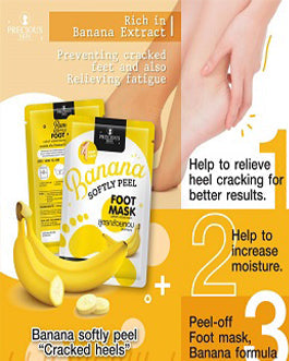 Rejuvenate tired feet with the Precious Skin Banana Foot Mask. Nourish and soften dry, cracked skin with lemon extract and natural oils. Enjoy softer, smoother feet in just 10-15 minutes. Let your feet refresh and relax without scrubbing or irritation.