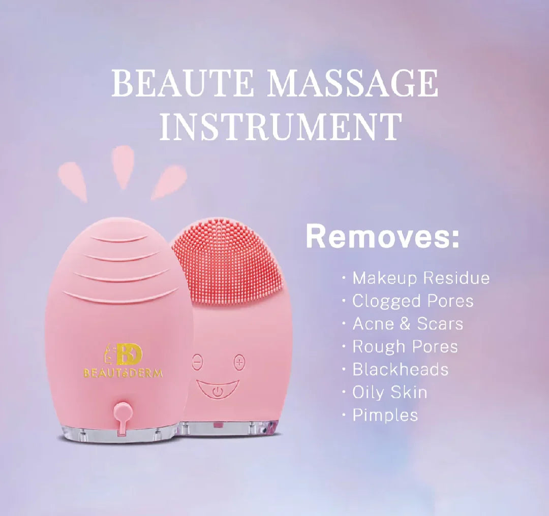 Give your skin what it deserves. The Beaute Massage Instrument is a silicone electric facial cleanser. A high-tech beauty tool aimed at the problem of a clean surface, with high-frequency vibration technology. It helps remove rough pores, makeup residue, blackheads, pimples, acne, scars, oily skin, and clogged pores.