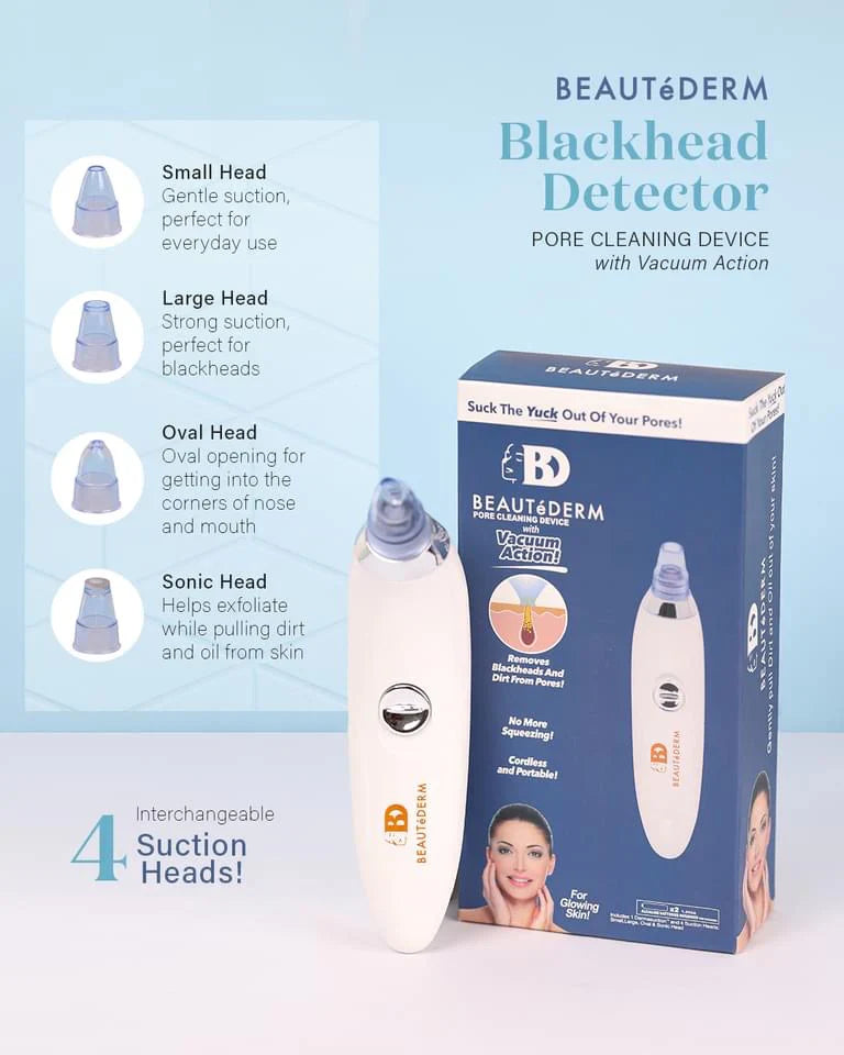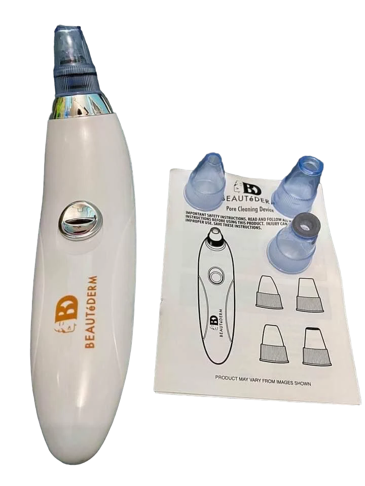 Suck the yuck out of your pores! Beautederm Pore Cleaning Device with Vacuum Action is the new way to clean pores. It gently removes blackheads and dirt from the pores on your face without squeezing. The Secret is the powerful yet gentle vacuum that pulls dirt and oils out of your skin, leaving your skin feeling clean and youthful.