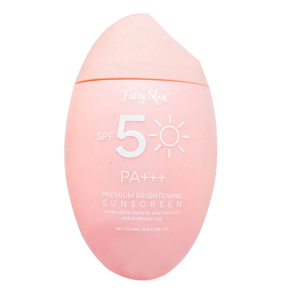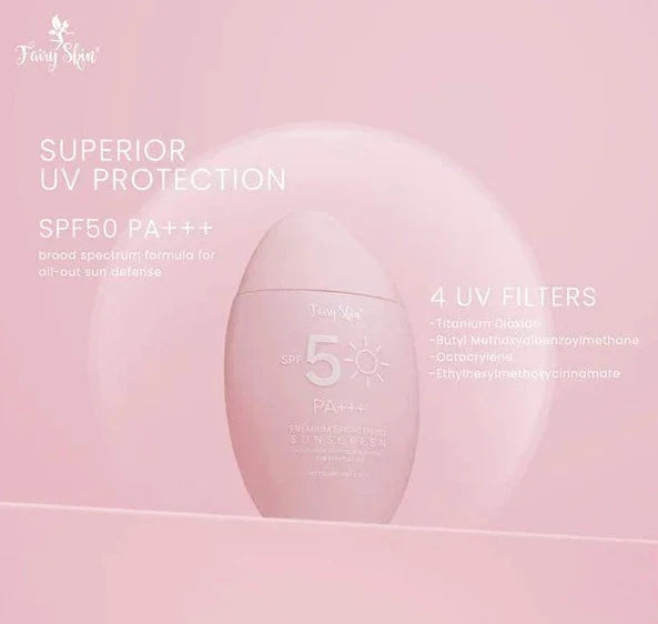 Introducing Fairy Skin Premium Brightening Sunscreen! Our sunscreen blends protection and brightening power to keep your skin safe and glowing. Its lightweight formula won't leave a greasy residue, and delivers a subtle hint of color to give you a natural, sun-kissed look. Shield your skin and enjoy a beautiful, healthy glow all day long!