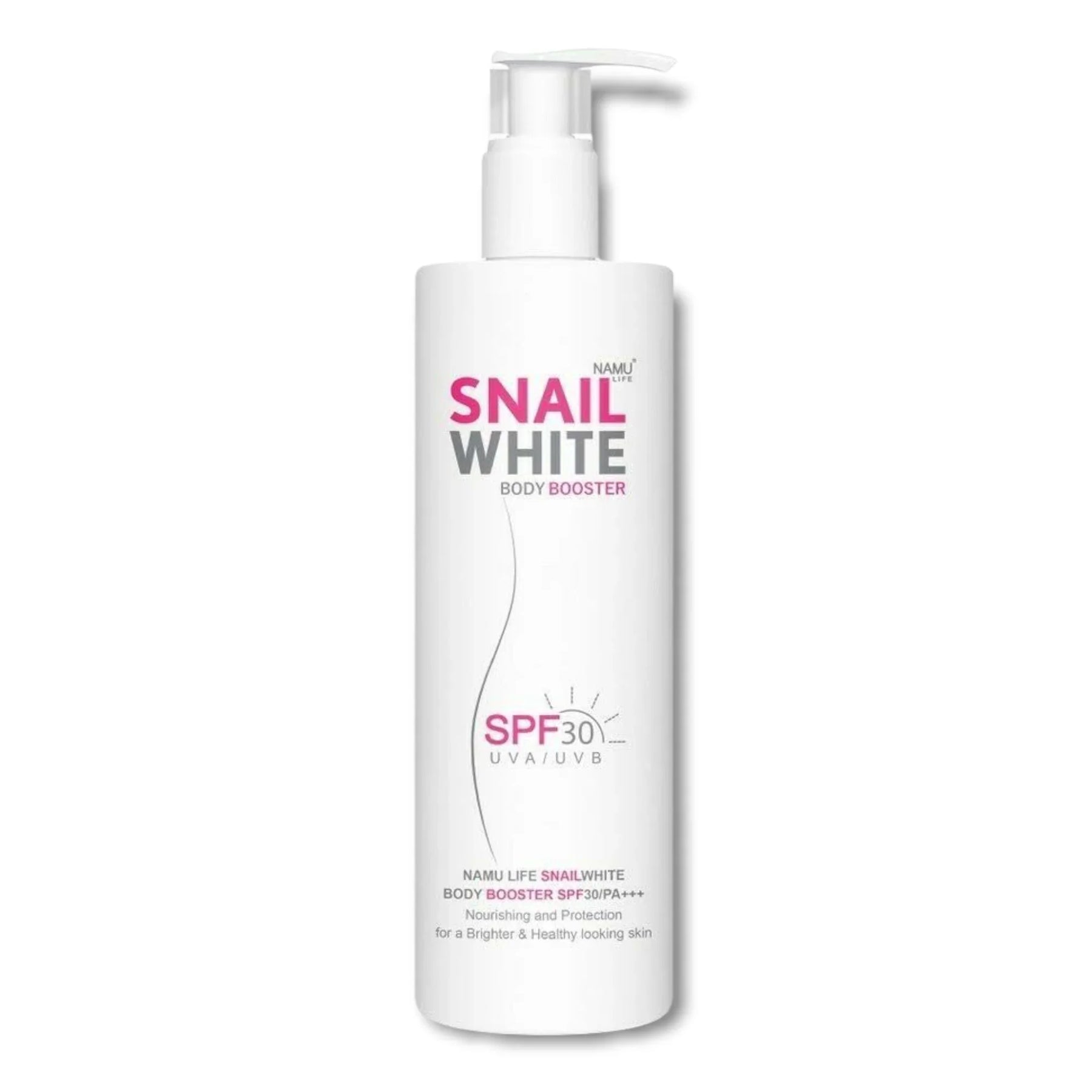 A luxurious Body Booster lotion with SPF30/PA+++ is formulated uniquely to nourish & protect. Formulated with collagen from Snail Potion and antioxidants from Astaxanthin & Ceramide which help to restore dull and damaged skin for brighter, firmer, and hydrated skin. With SPF30/PA+++, this lotion simultaneously provides protection from harsh UVA and UVB rays.