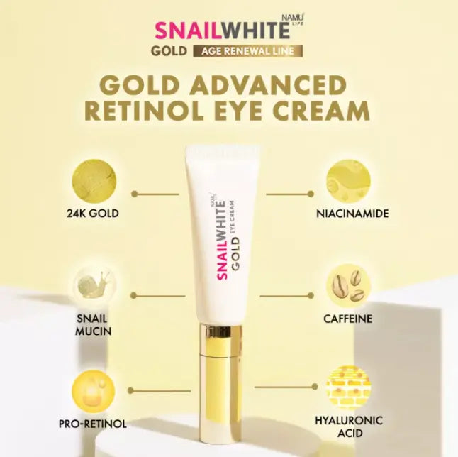 How to use: Apply the Gold Advanced Retinol Eye Cream under the eye area by patting gently using your ring finger. Gently massage the eye area with the built-in eye wand. Use daily, morning and night, after applying moisturizer.